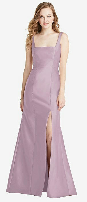 Spaghetti Strap Draped Skirt Gown with Front Slit in lilac dusk