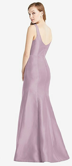 V-Neck Halter Satin Trumpet Gown in suede rose
