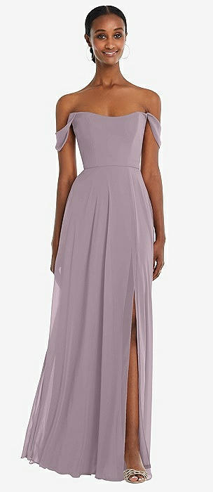 Off-the-Shoulder Draped Neckline Maxi Dress in lilac dusk