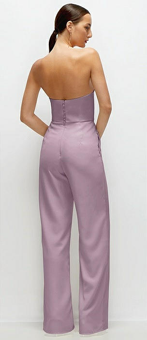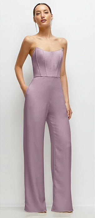 Strapless Cat-Eye Corset Crepe Wedding Jumpsuit in suede rose