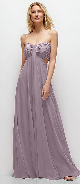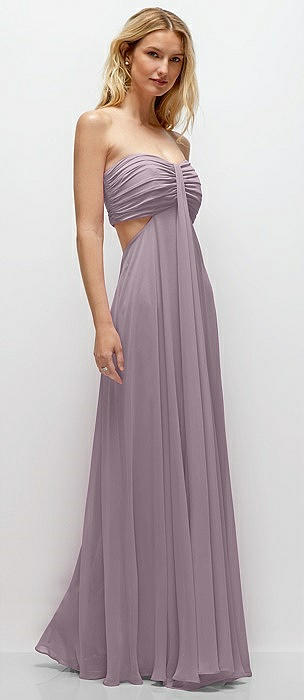 Strapless Empire Waist Cutout Maxi Dress with Covered Button Detail in lilac dusk
