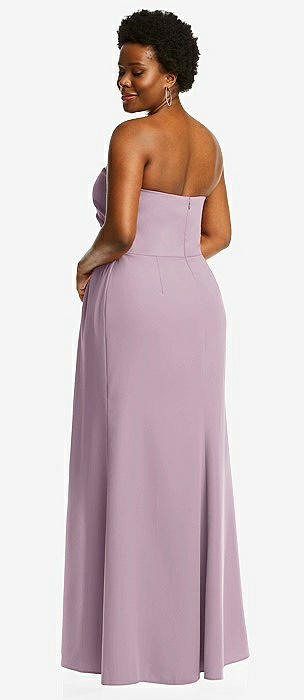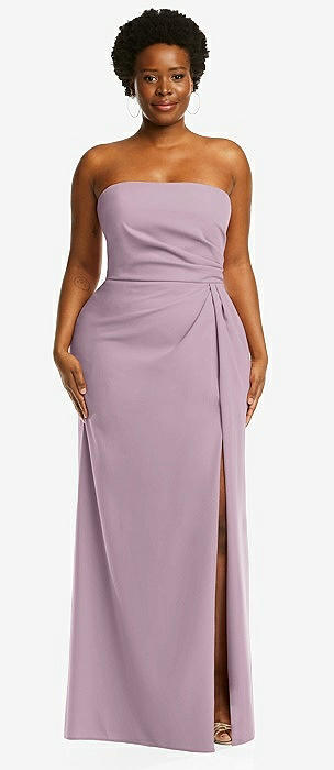 Strapless Pleated Faux Wrap Trumpet Gown with Front Slit in suede rose