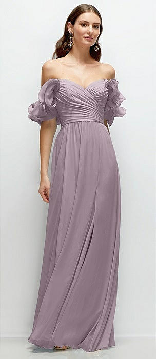 Tiered Chiffon Maxi A-line Dress with Convertible Ruffle Straps in lilac dusk