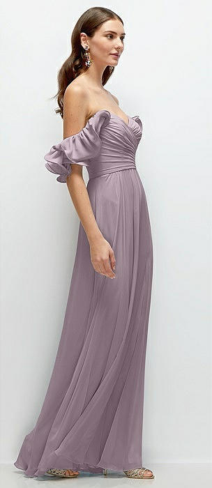 Strapless Pleated Surplice Chiffon Maxi Dress with A-Line Skirt in lilac dusk