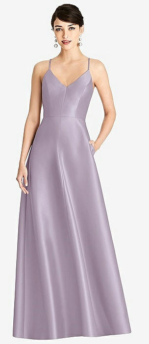 V-Neck Full Skirt Satin Maxi Dress in lilac haze