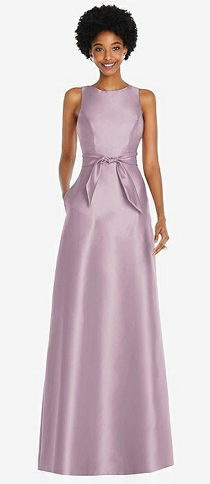 Sleeveless A-Line Satin Dress with Pockets in suede rose
