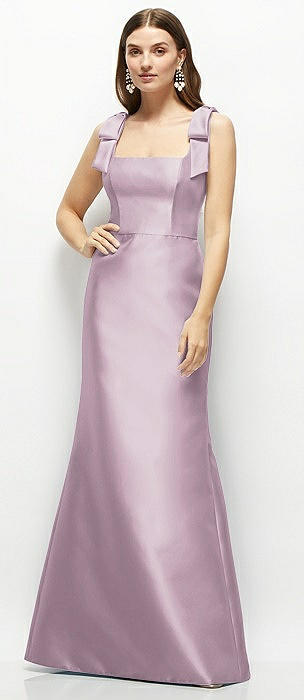 Satin Fit and Flare Maxi Dress with Shoulder Bows in suede rose