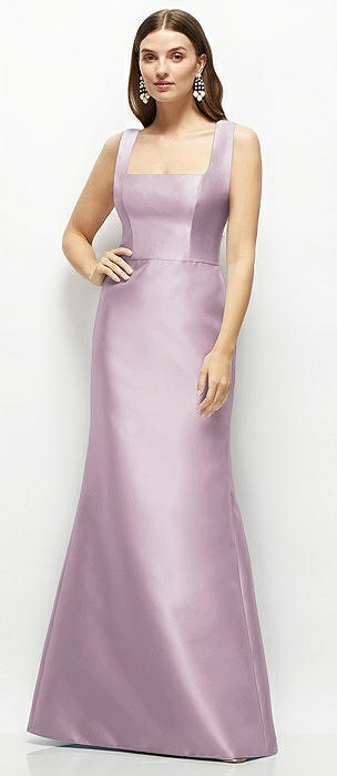 Satin Square Neck Fit and Flare Maxi Dress in suede rose