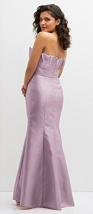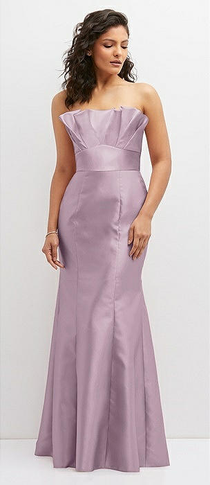 Strapless Cat-Eye Draped Bodice Satin Tumpet Dress in suede rose