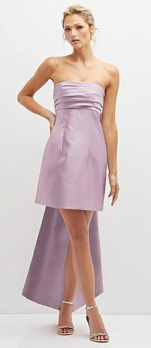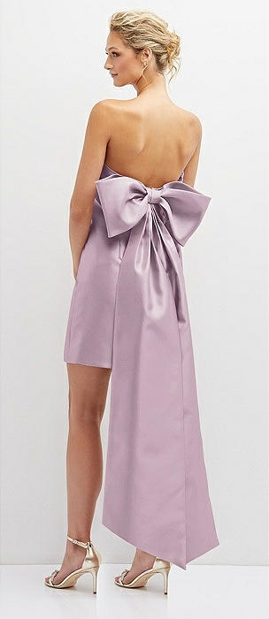 Strapless Satin Column Mini Dress with Oversized Bow in suede rose