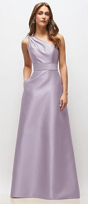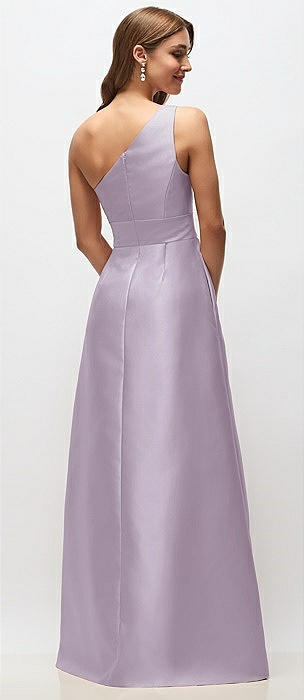 Draped One-Shoulder Satin Maxi Dress with Pockets in lilac haze