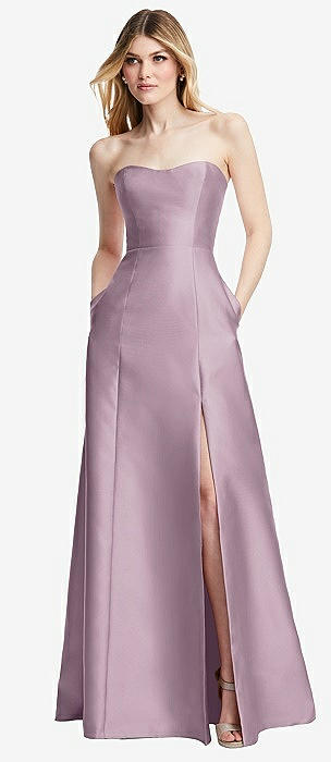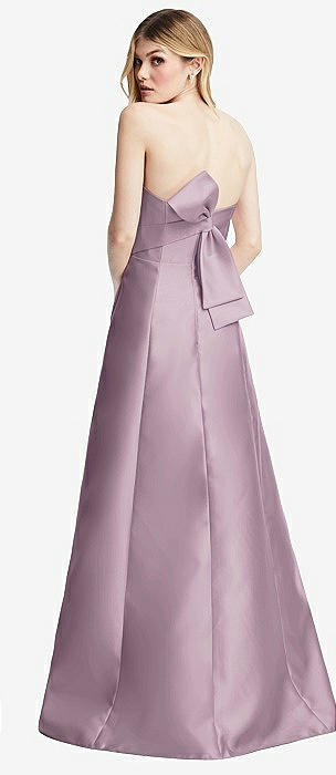 Strapless A-line Satin Gown with Modern Bow Detail in suede rose