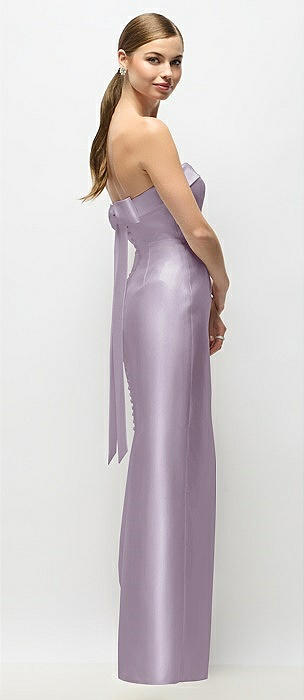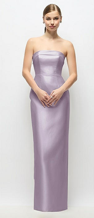 Strapless Cuff Satin Maxi Dress with Column Skirt & Back Bow in lilac haze