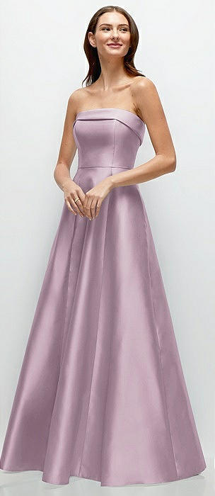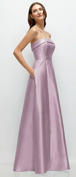 Strapless Bias Cuff Bodice Satin Gown with Pockets in suede rose