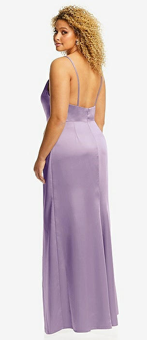 Cowl-Neck Draped Wrap Maxi Dress with Front Slit in pale purple