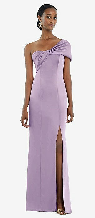 Twist Cuff One-Shoulder Princess Line Trumpet Gown in pale purple