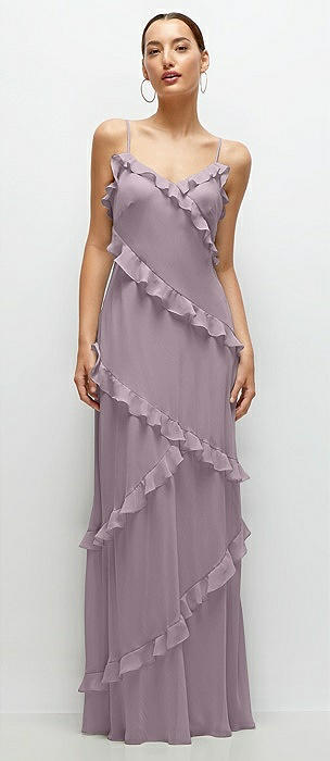 Asymmetrical Ruffle Chiffon Bias Slip Maxi Dress in lilac dusk