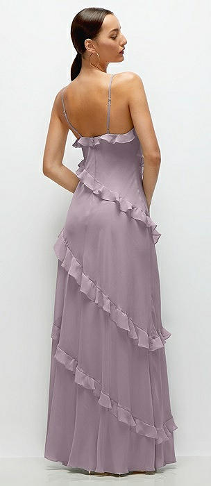 Bustier-Style Chiffon Tiered Ruffle Maxi Dress with Adjustable Straps in lilac dusk