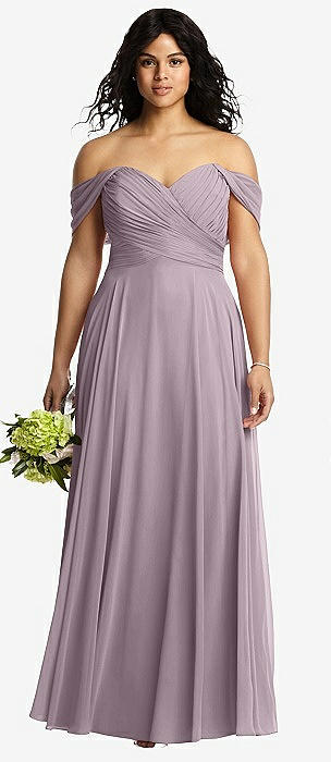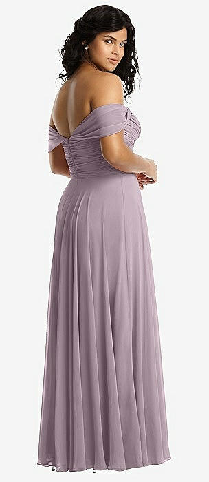Off-the-Shoulder Draped Chiffon Maxi Dress in lilac dusk
