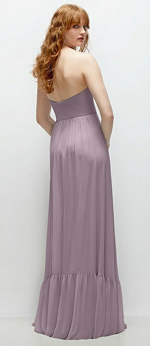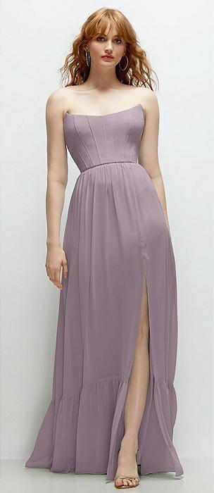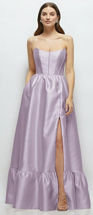 Strapless Cat-Eye Boned Bodice Maxi Dress with Ruffle Hem in lilac haze