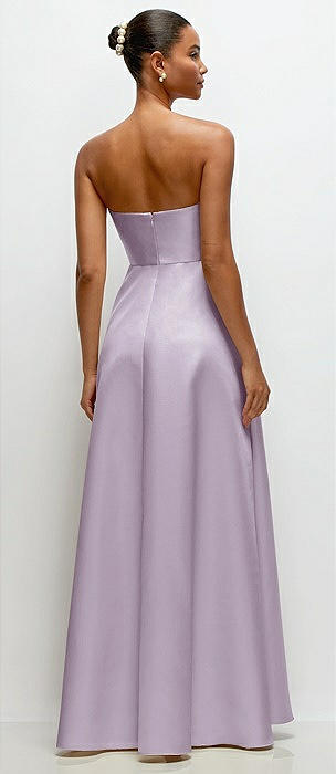 Strapless Satin Drop Waist Gown with Full Skirt in lilac haze