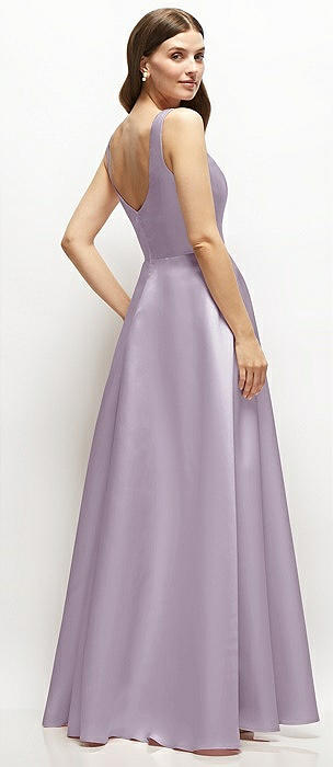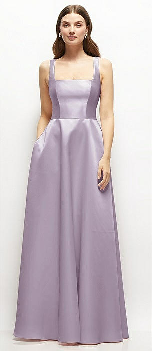 Square-Neck Satin Maxi Dress with Full Skirt in lilac haze