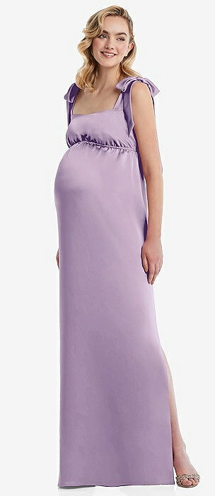 Flat Tie-Shoulder Empire Waist Maternity Dress in pale purple