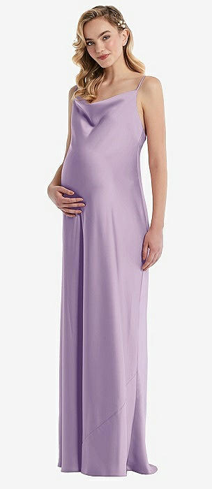 Cowl-Neck Tie-Strap Maternity Slip Dress in pale purple