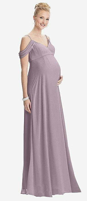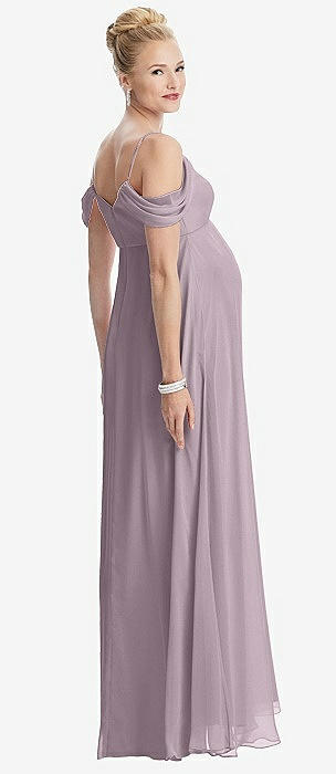 Draped Cold-Shoulder Chiffon Maternity Dress
