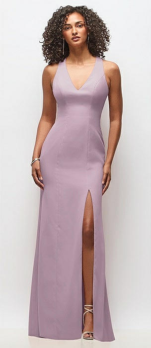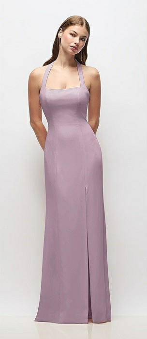 Square-Neck Satin A-line Maxi Dress with Front Slit in lilac haze