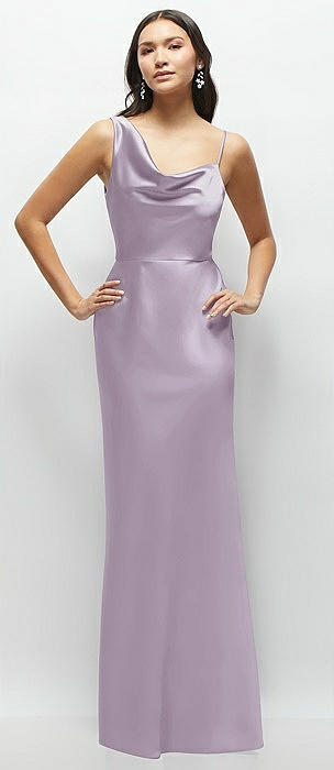 One-Shoulder Draped Cowl A-Line Satin Maxi Dress in lilac haze