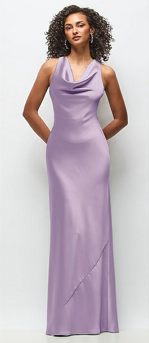 Cowl Neck Criss-Cross Back Satin Maxi Dress in pale purple