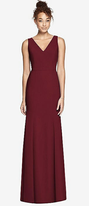 Tie-Back Cutout Trumpet Gown with Front Slit in cabernet