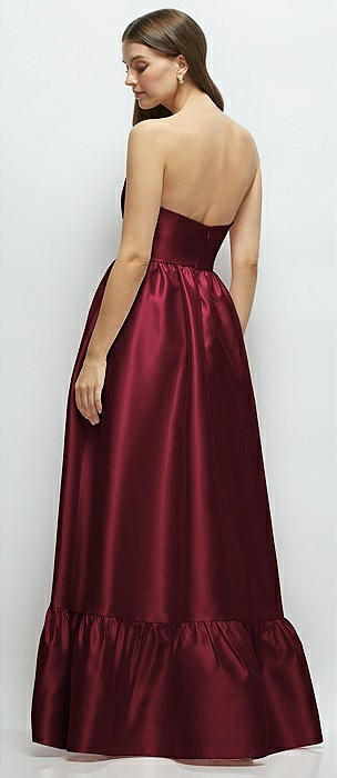 Strapless Satin High Low Dress with Pockets in cabernet