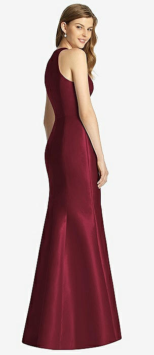 Sleeveless Satin Trumpet Gown with Bow at Open-Back in cabernet