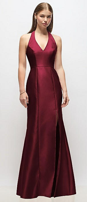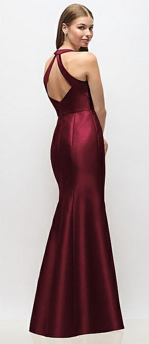 Draped Twist Halter Tie-Back Trumpet Gown in cabernet