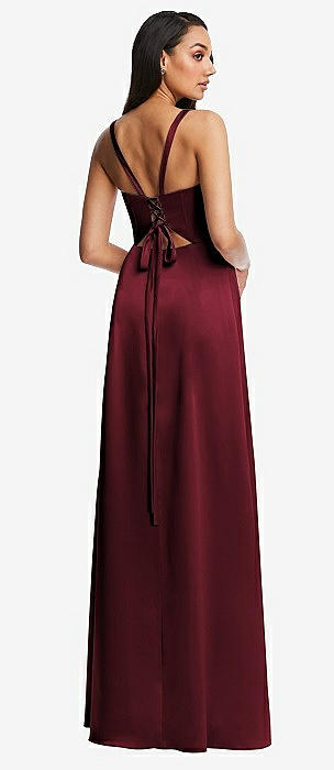 Lace Up Tie-Back Corset Maxi Dress with Front Slit in cabernet