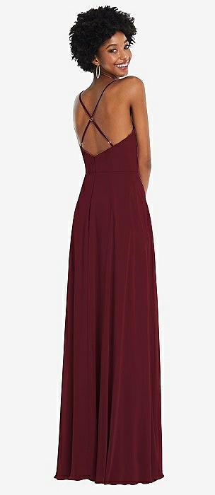 Faux Wrap Criss Cross Back Maxi Dress with Adjustable Straps in cabernet