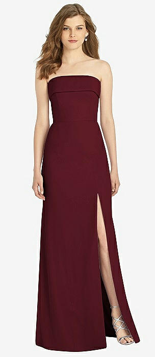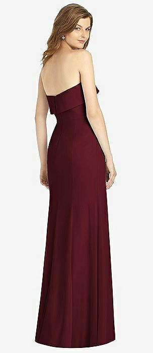 Strapless Chiffon Maxi Dress with Asymmetrical Ruched Drop Waist in cabernet