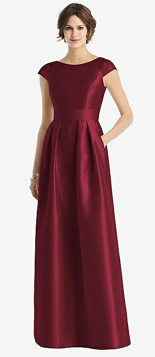 Cap Sleeve Pleated Skirt Dress with Pockets in cabernet