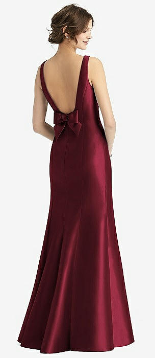 Sleeveless Satin Trumpet Gown with Bow at Open-Back in cabernet