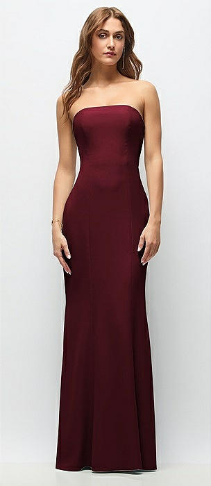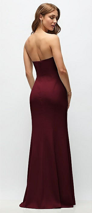 Strapless Fit and Flare Crepe Maxi Dress in cabernet