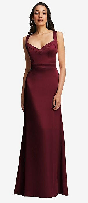 Draped Wrap Stretch Satin Mermaid Dress with Horsehair Hem in cabernet