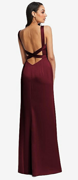 Framed Bodice Criss Criss Open Back A-Line Maxi Dress in cabernet