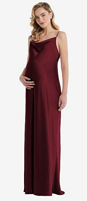 Cowl-Neck Tie-Strap Maternity Slip Dress in cabernet