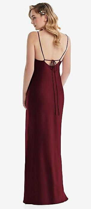 Cowl-Neck Open Tie-Back Stretch Satin Mermaid Dress with Slight Train in cabernet