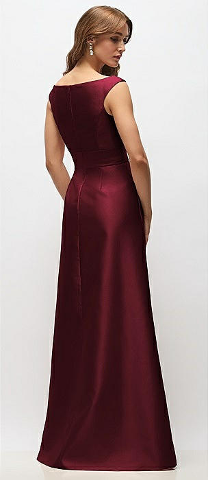 Draped Cowl-Back Princess Line Dress with Front Slit in cabernet