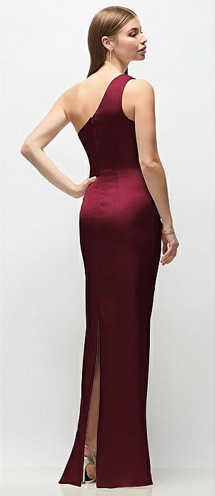 Bow One-Shoulder Satin Maxi Dress with Trumpet Skirt in cabernet