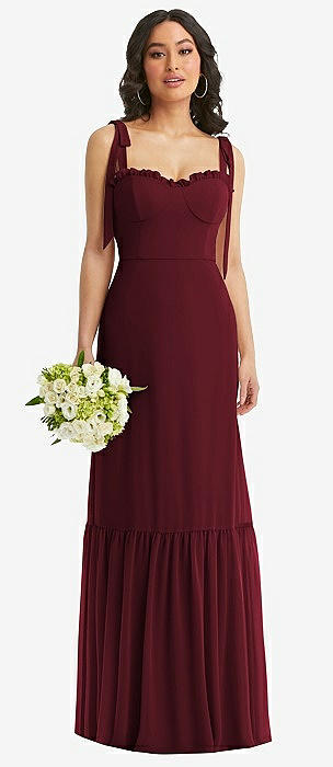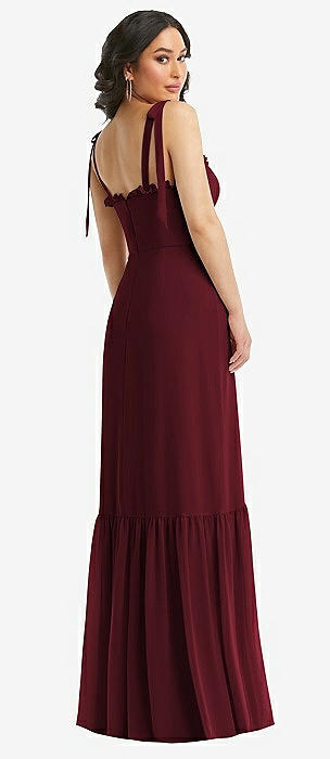 Tiered Chiffon Maxi A-line Dress with Convertible Ruffle Straps in cabernet
