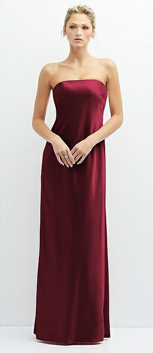 Strapless Maxi Bias Column Dress with Peek-a-Boo Corset Back in cabernet